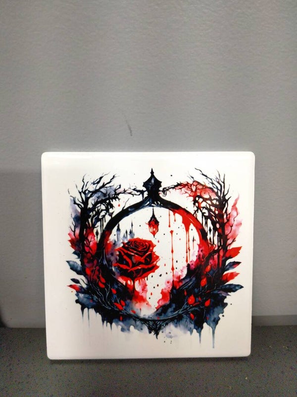 We can put any colored design on these 4in x 4in coasters. Please contact us directly so that we can help you with your design.